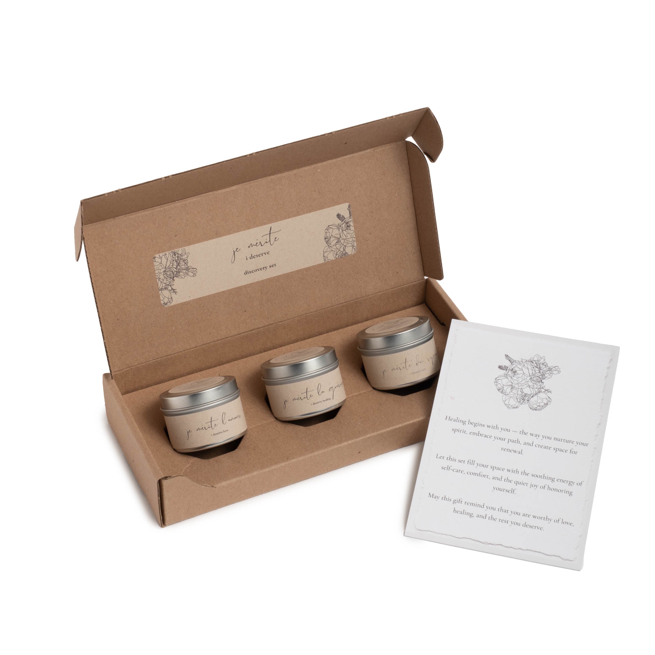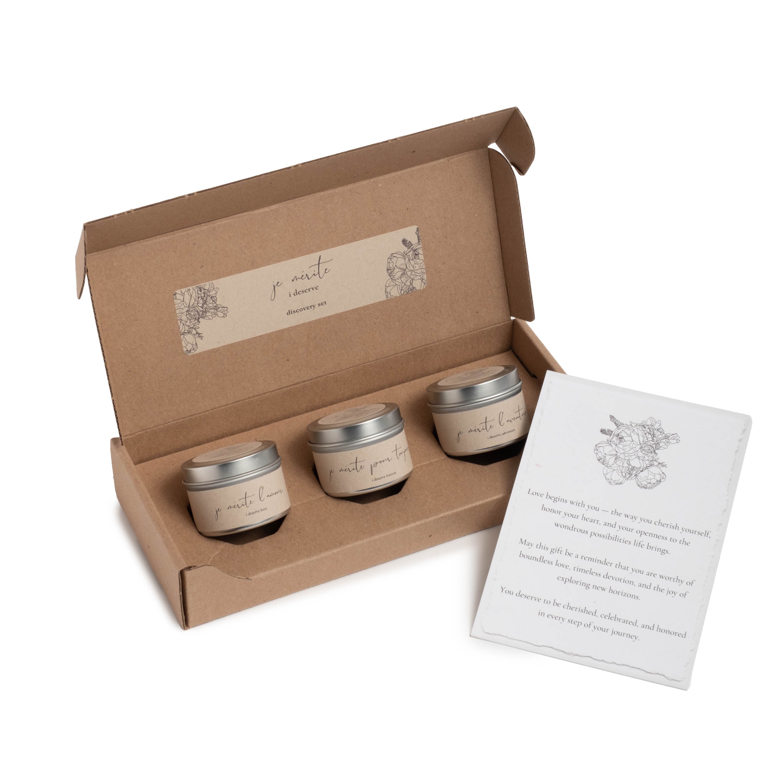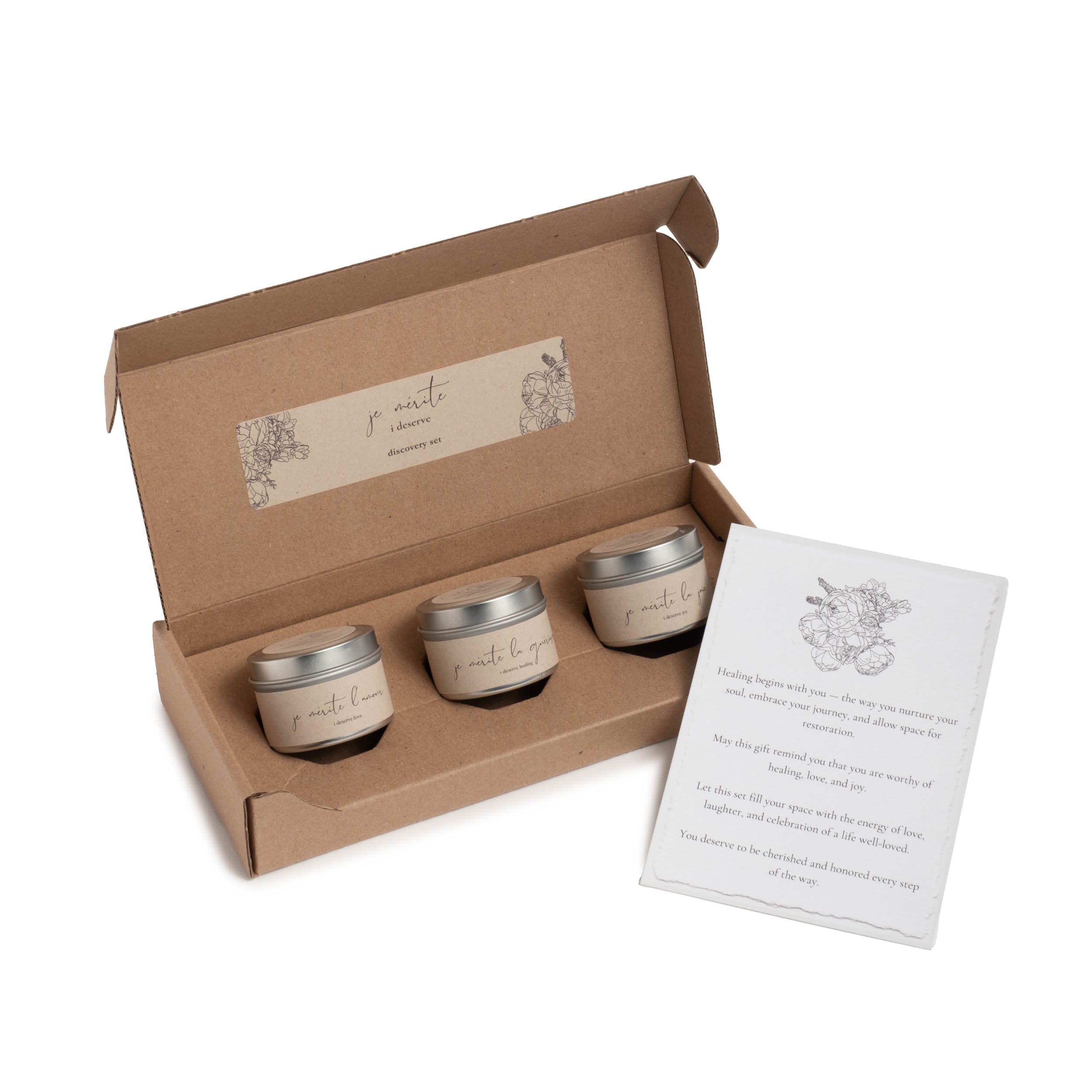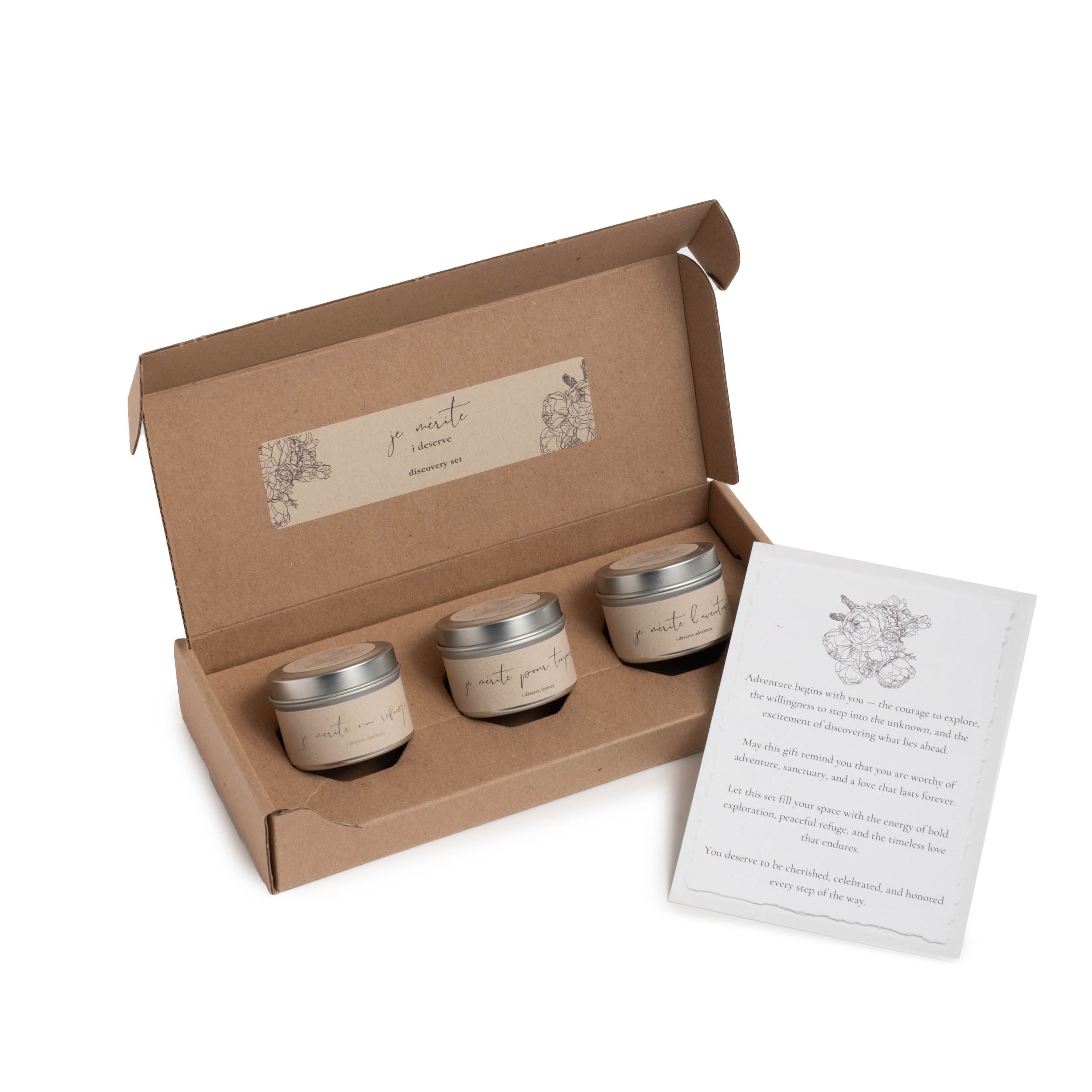 perfectly sized for on-the-go moments, these hand-poured travel candles are infused with uplifting scents and affirmations, helping you create a sense of sanctuary and self-care no matter where life takes you