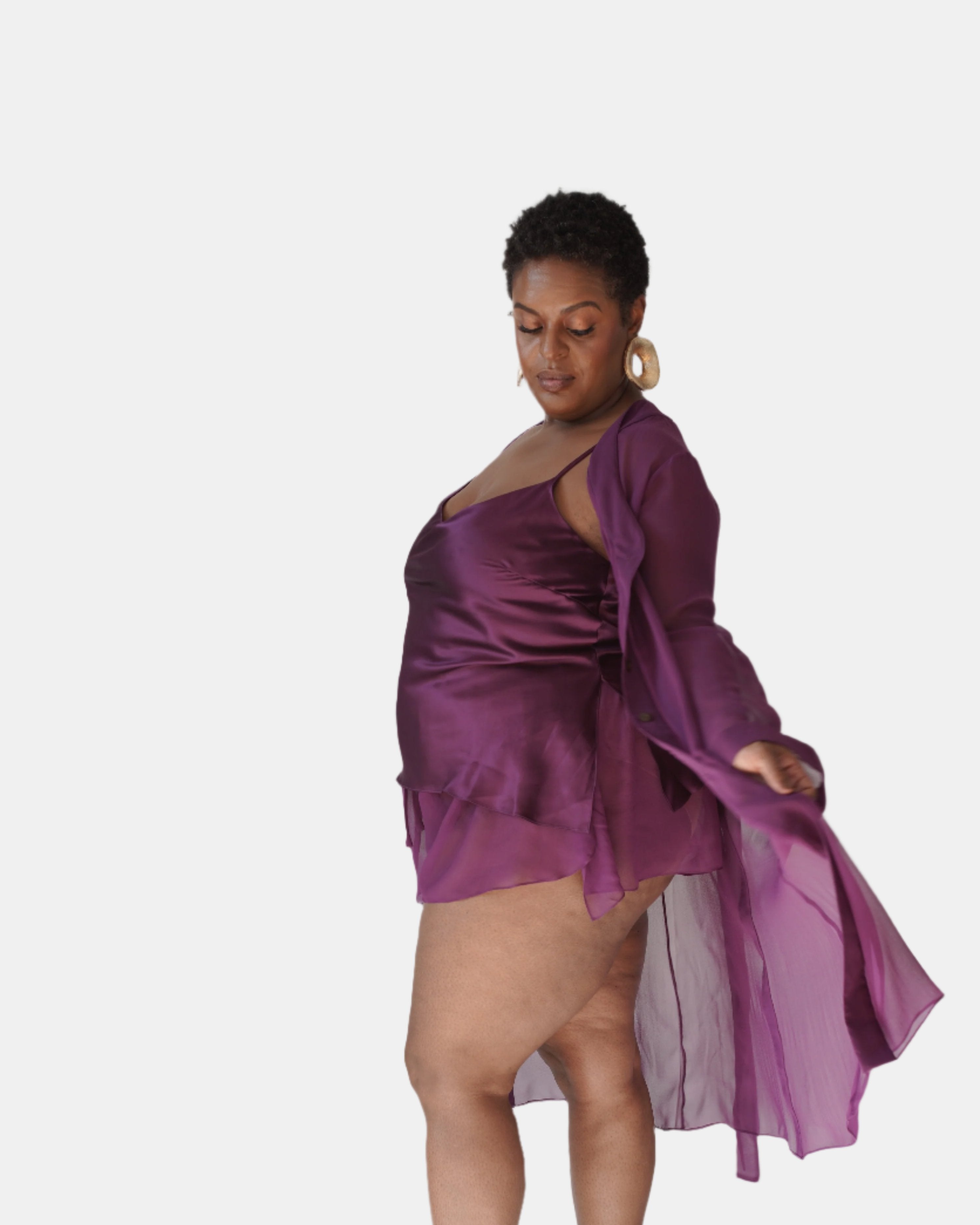 an homage to the iconic donna summer, crafted in luxurious silk chiffon, this night dress channels timeless glamour and sophistication