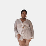 introducing the donna silk chiffon drawstring pleated tap short in blush from je mérite, i deserve—a glamorous nod to the legendary donna summer