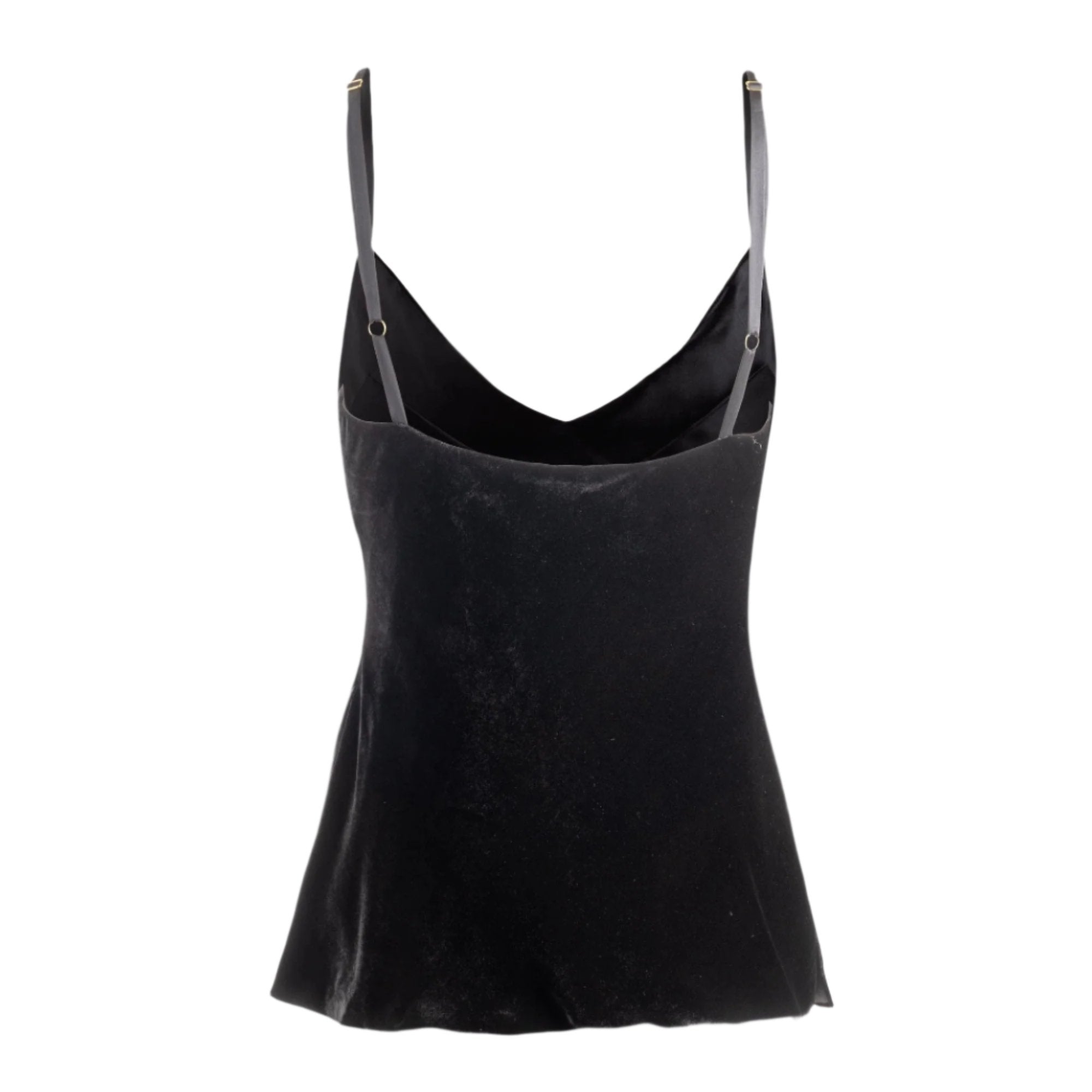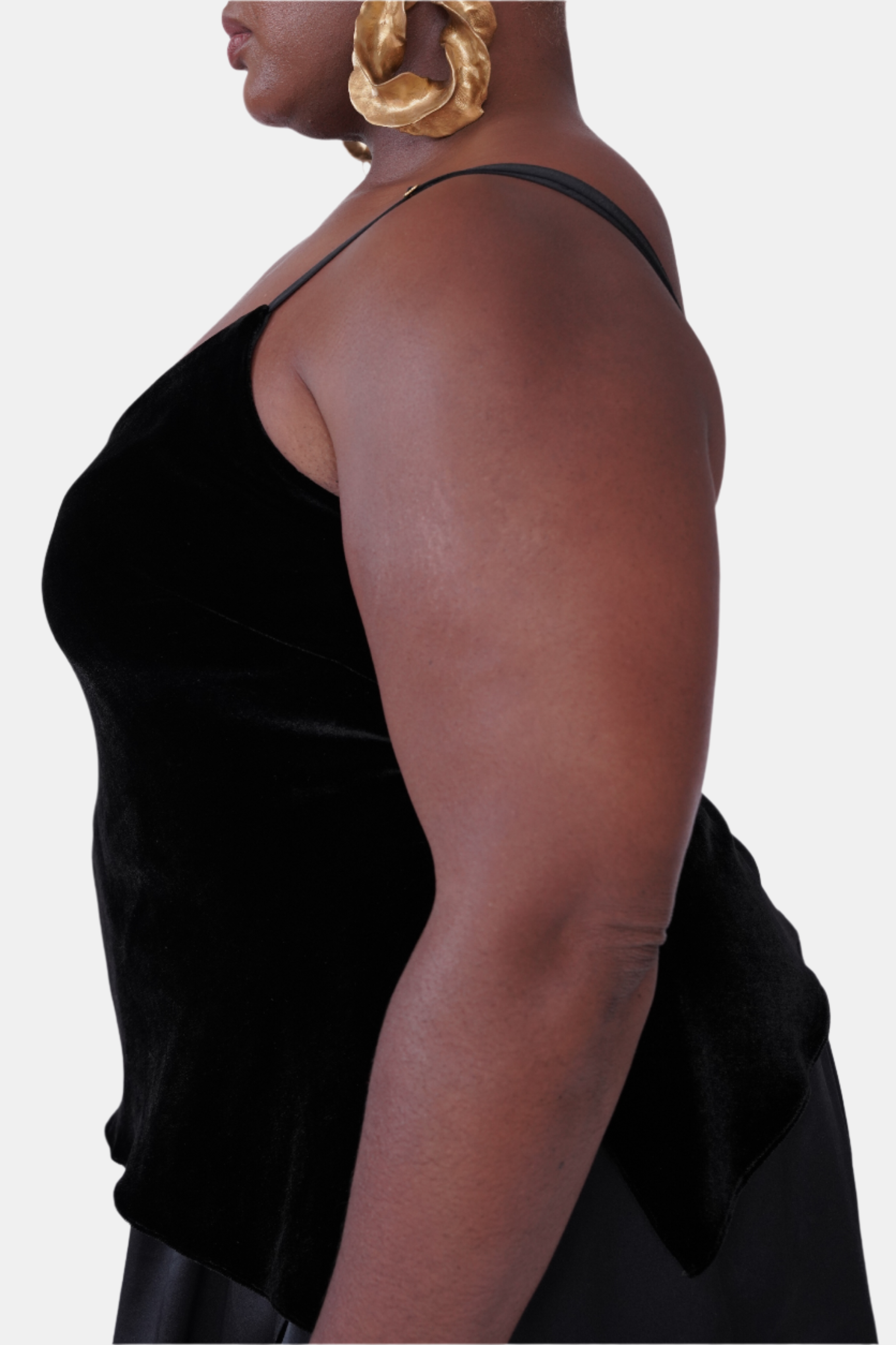 featuring a lined bodice for added comfort and structure, adjustable straps for the perfect fit, and chic side slits for a touch of allure, this silk velvet camisole is designed to drape beautifully