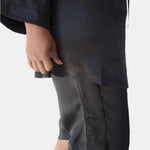 crafted from luxurious black silk, these bermuda shorts blend the classic tuxedo style with a modern drawstring design, offering both comfort and sophistication