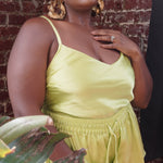 our silk camisole is lined with thin adjustable straps and slits at both sides