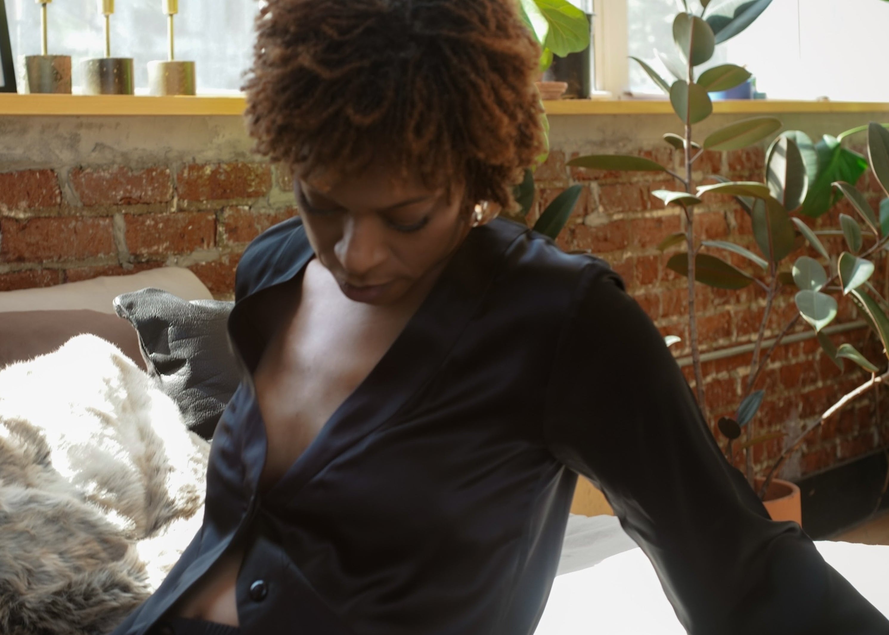 this sophisticated ensemble combines the effortless style of a silk shirtdress with chic tuxedo pant